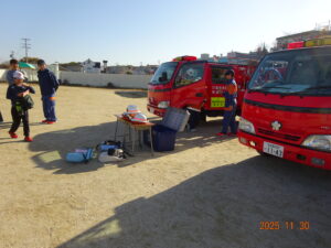 11月30日(日)「西小学校」にて浅田・梅森・野方合同で「第45回地域ふれあいの会」が開催されました。運動場の防災コ-ナ-では自主防災会員による非常食の炊き出し、各区消防団員による消防車乗車体験、体育館内では色々なゲ-ムコ-ナ-が設置され、子ども達の元気な声が響いていました。又、浅田夢小町のよさこい。終盤にはお待ちかねのカレ-ライスが振る舞われお開きとなりました。関係役員の皆様大変お疲れ様でした。